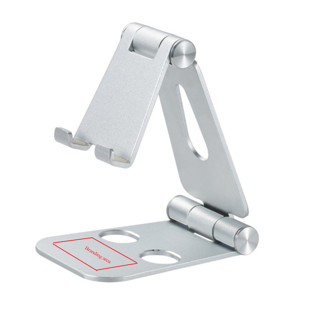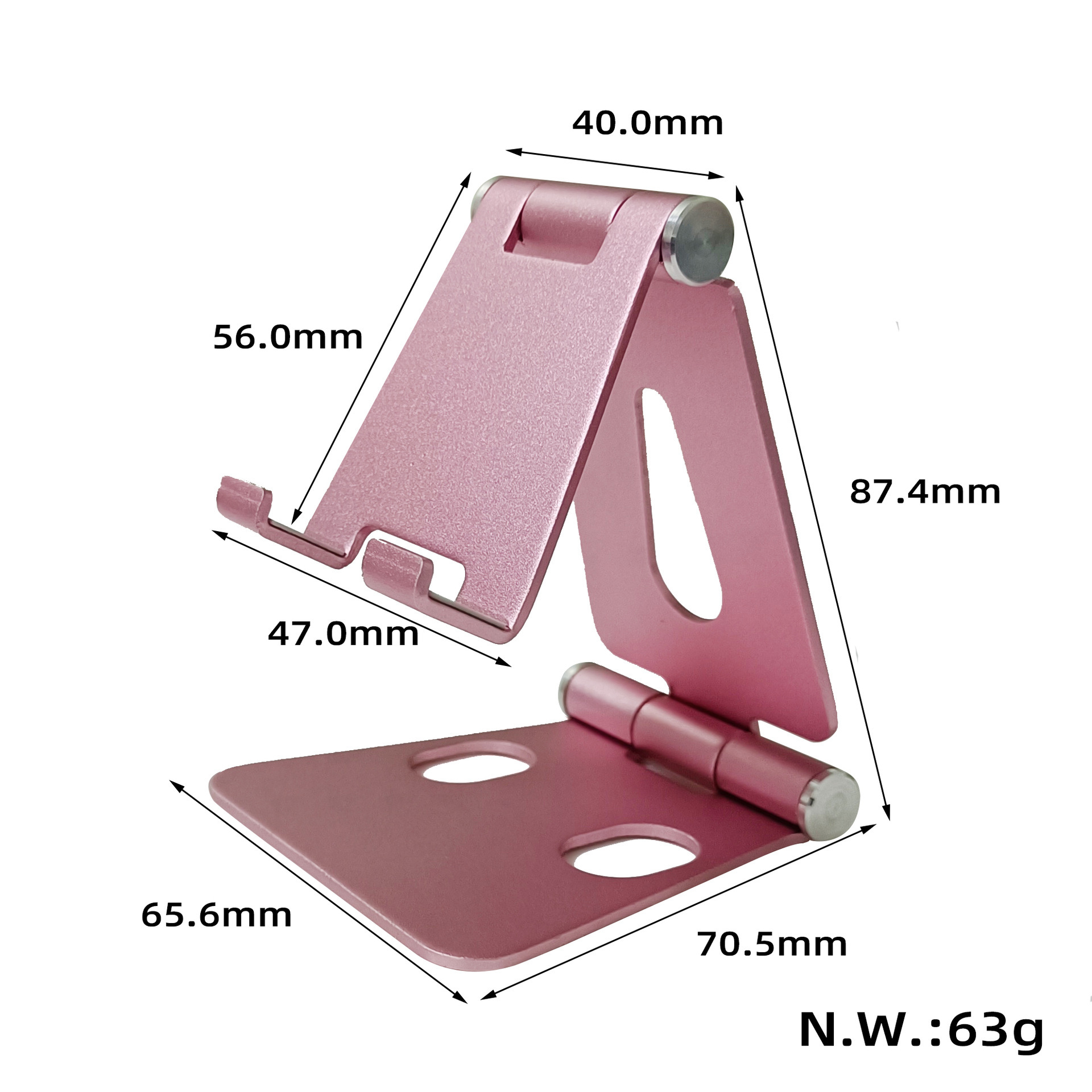 Foldable phone stand made from aluminium alloy available in rose gold, gold, black and silver.