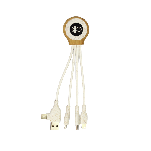 Multi charging cable with bamboo base and biodegradable cables