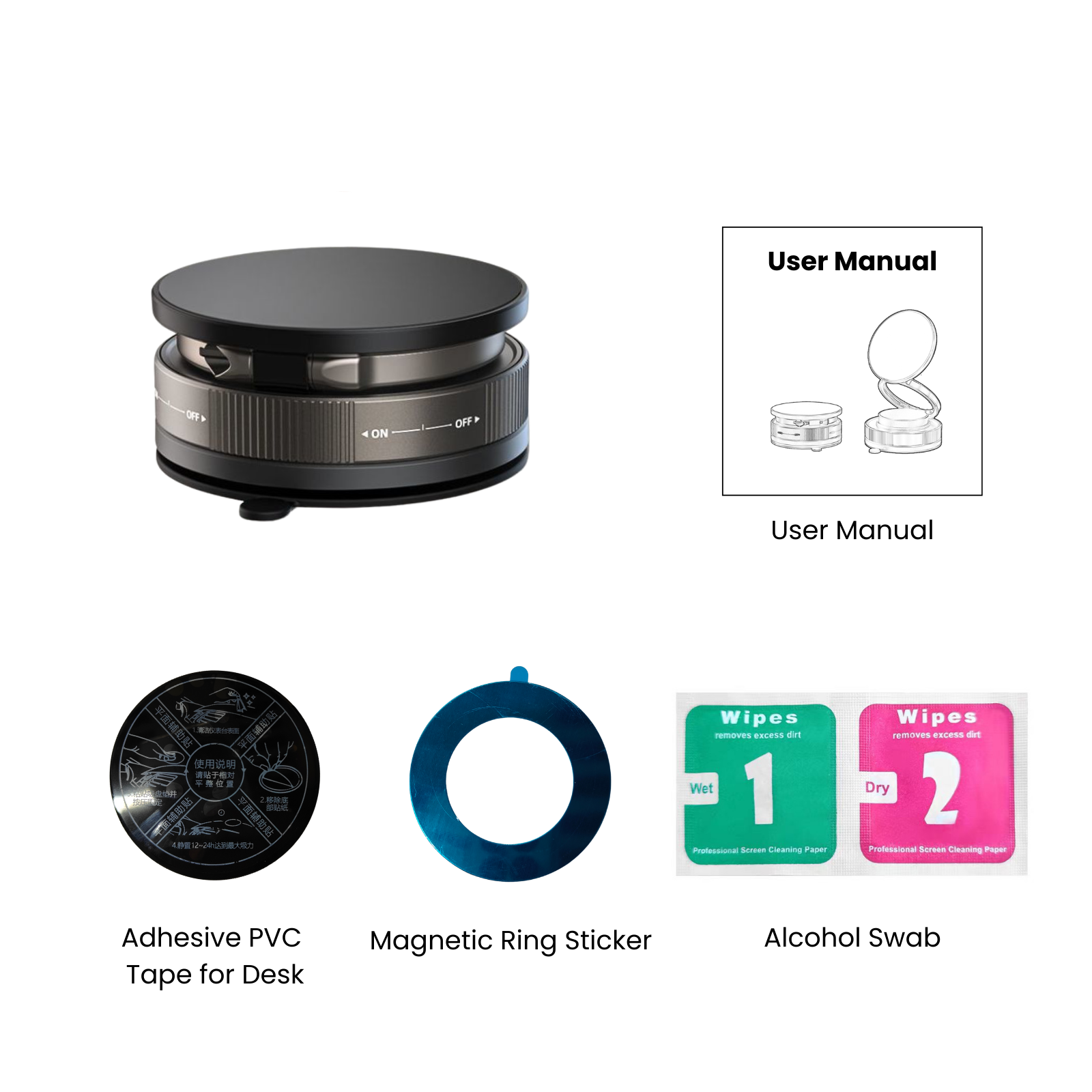 Meet the CM001—our strongest and most versatile phone mount yet, built for hands-free ease and rock-solid stability. Its 360° rotatable design lets you adjust to the perfect angle, whether you’re filming content, driving, working out, or just multitasking. The manual screw-lock suction system ensures a firm grip on smooth surfaces—no charging required—supporting up to 5kg for up to 2 hours.