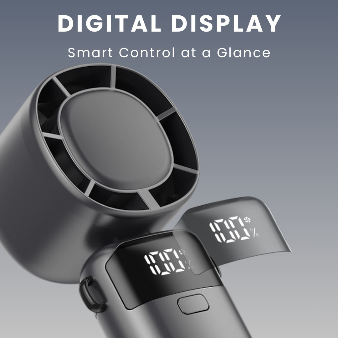 Stay cool wherever you are with the Portable Handheld Turbo Fan! Engineered for powerful airflow and extended use, this compact fan delivers up to 4 hours of refreshing breeze on a single charge. Its high-performance turbo motor ensures consistent cooling, while a sleek digital display shows real-time battery life and fan speed.