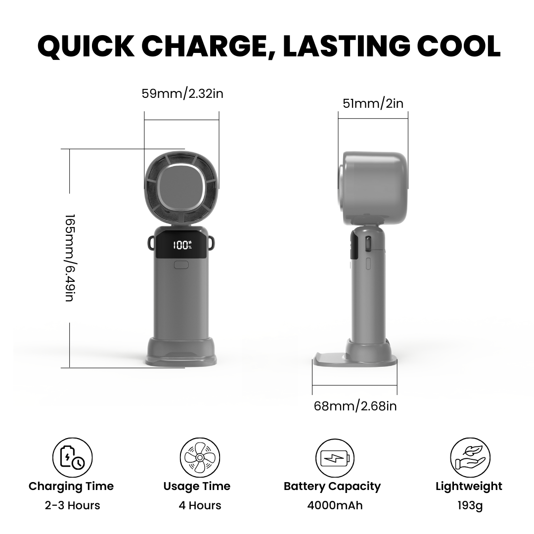 - 90° Adjustable Head: Foldable design for hands-free neck use or targeted airflow.