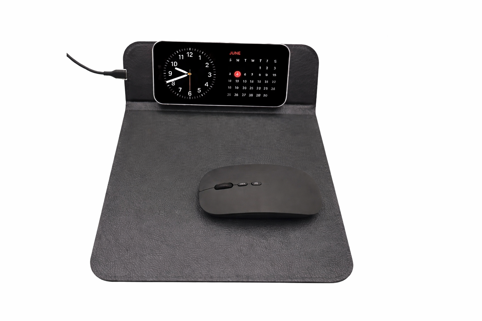 Upgrade any workspace with this multi-functional PU wireless charging mouse pad, combining sleek design with smart technology. Made from high-quality PU leather, it offers a smooth, durable surface for everyday use while keeping desks tidy and efficient.