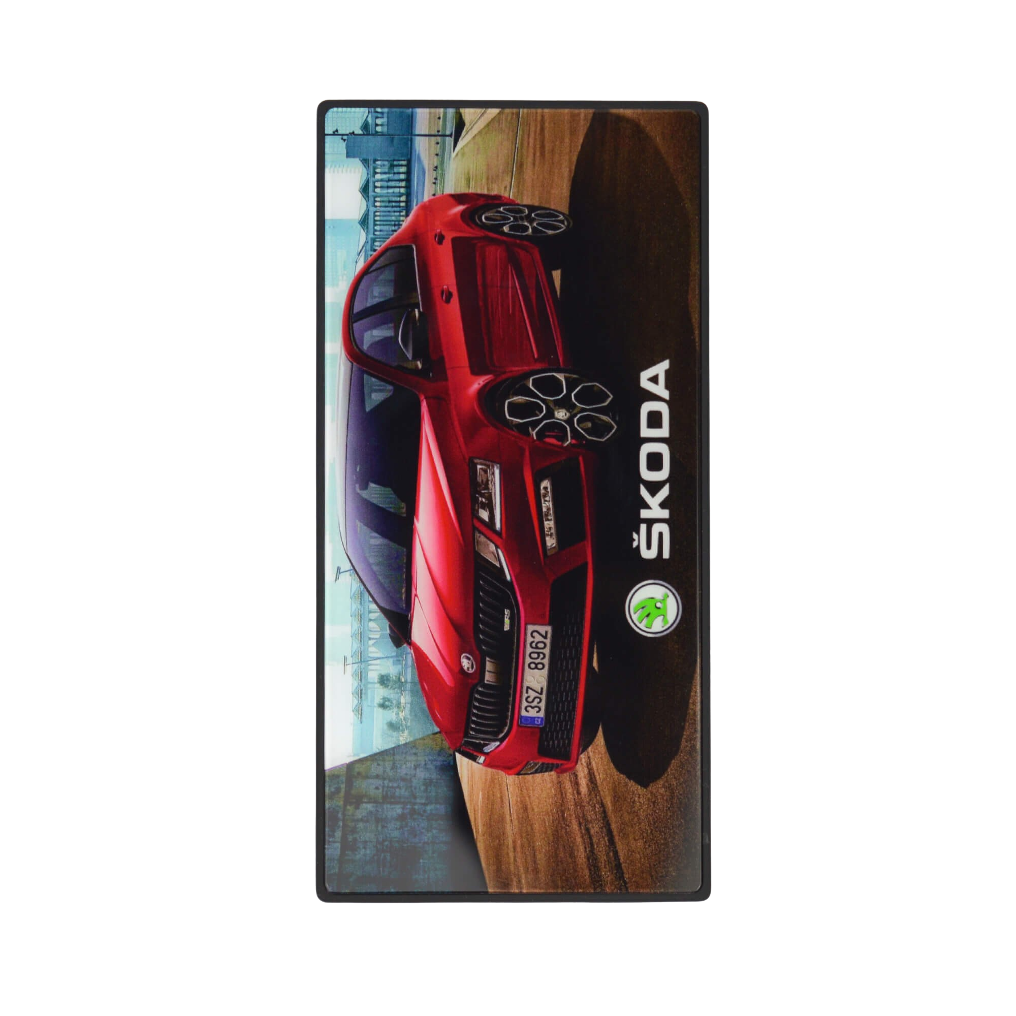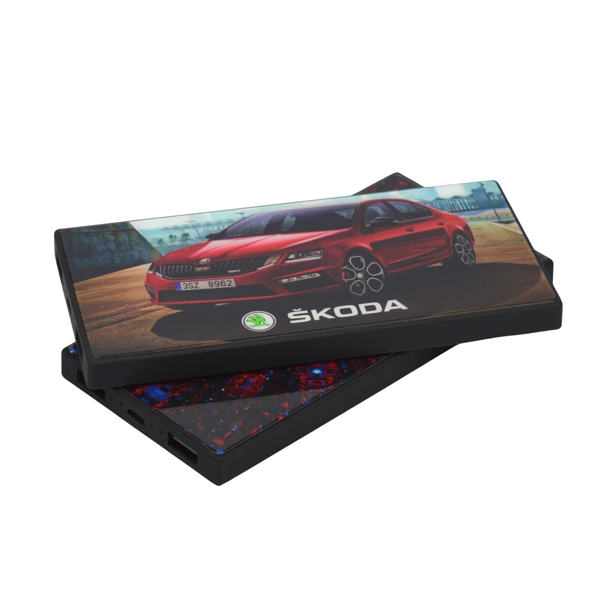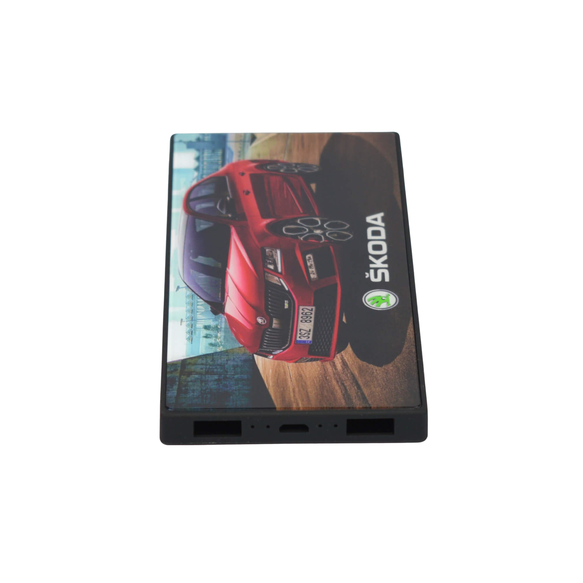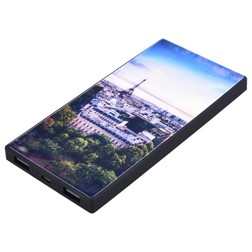Slim line power bank in 5000 mAh with Tempered glass branding. Supplied in a presentation box.
