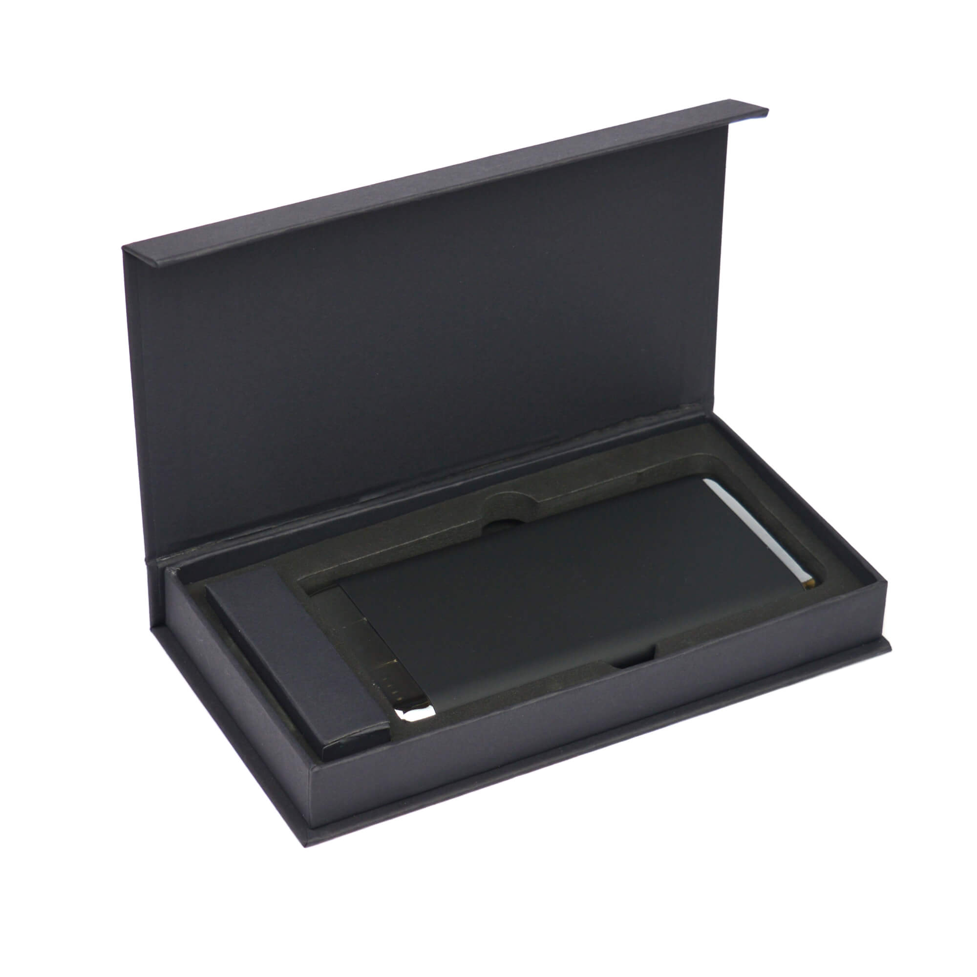 A LED power bank made from rubberised ABS plastic available in 5000 mAh and 10000 mAh capacity. The power bank is supplied in a black presentation box.