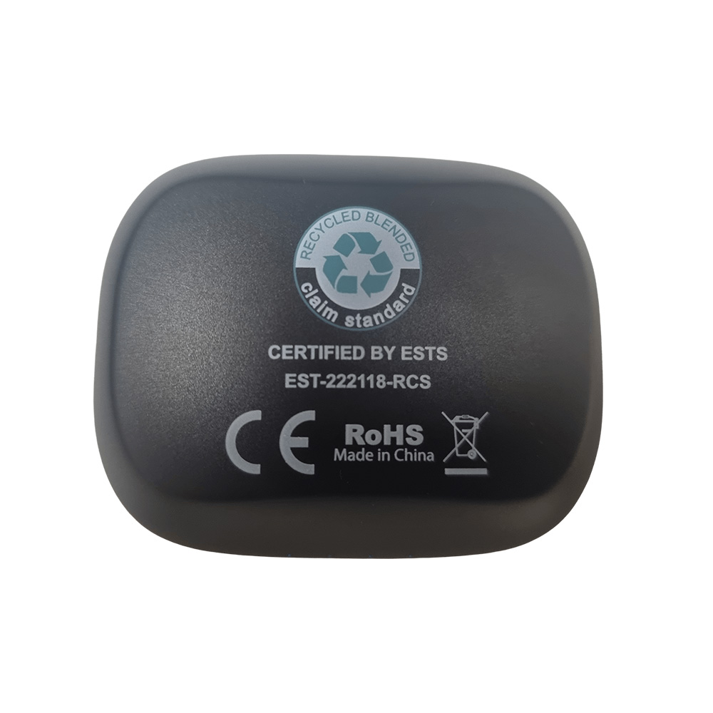 TWS wireless earbuds with ENC Function allow a better audio experience is made from rABS (recycled plastic) and customised with LED light-up logo.