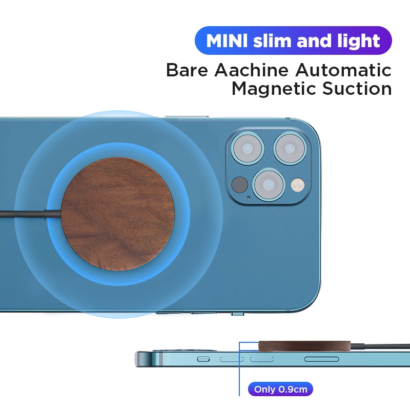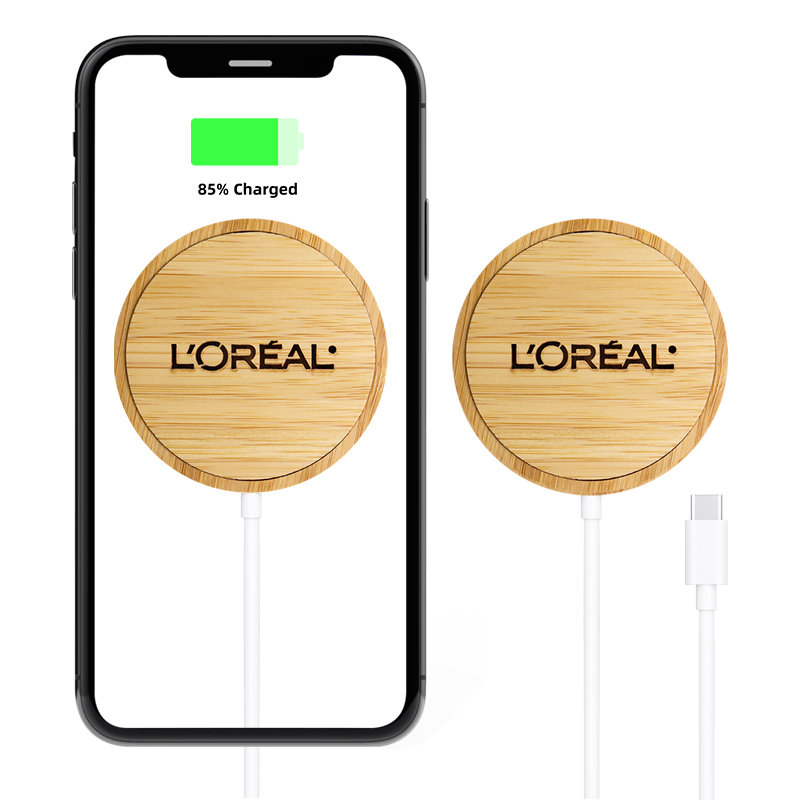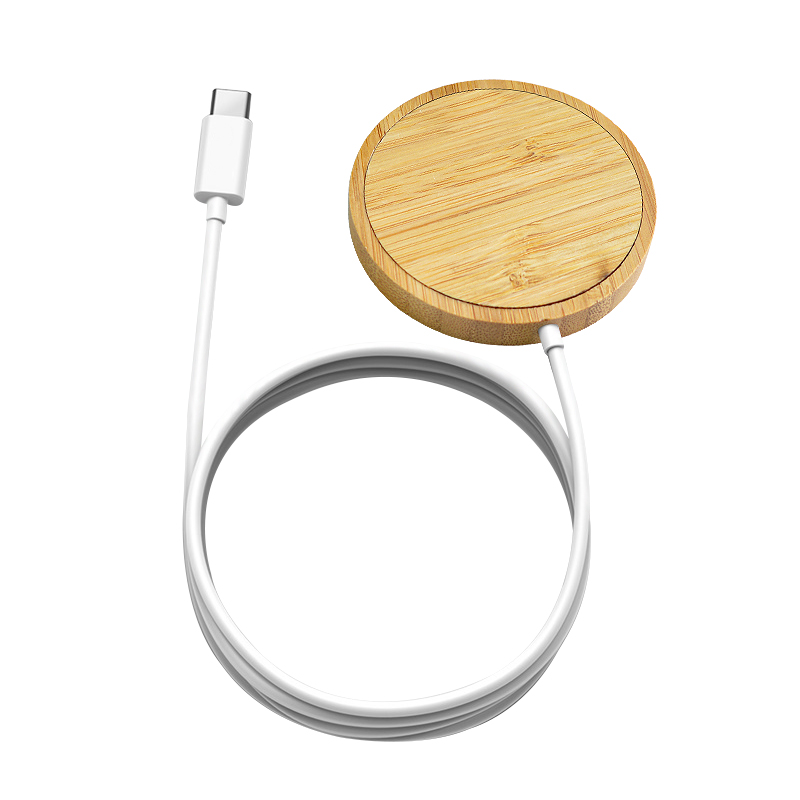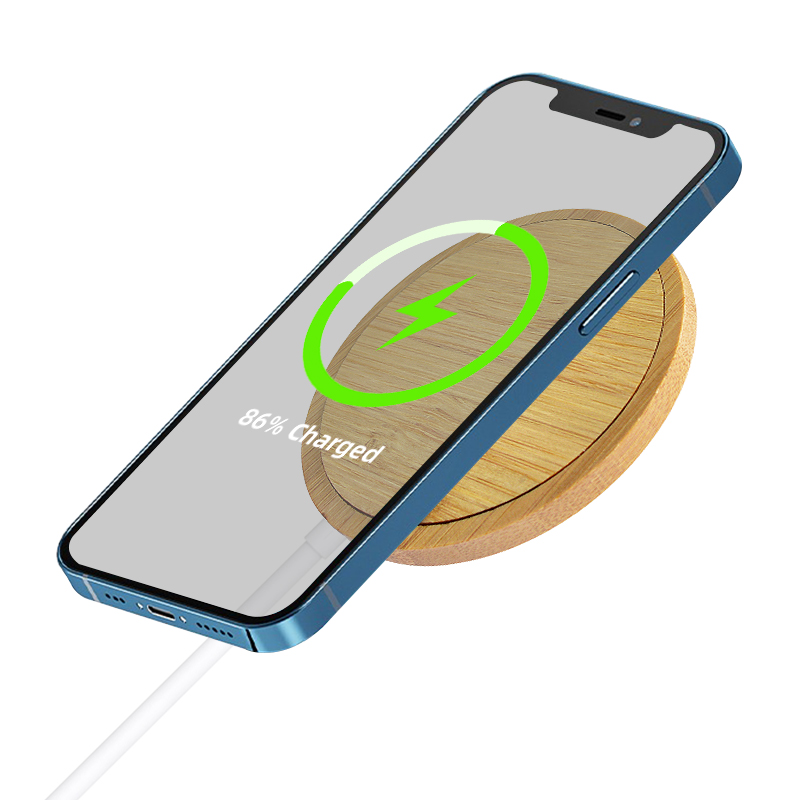 FSC approved bamboo 15W magnetic wireless charger, ideal for latest iPhones.