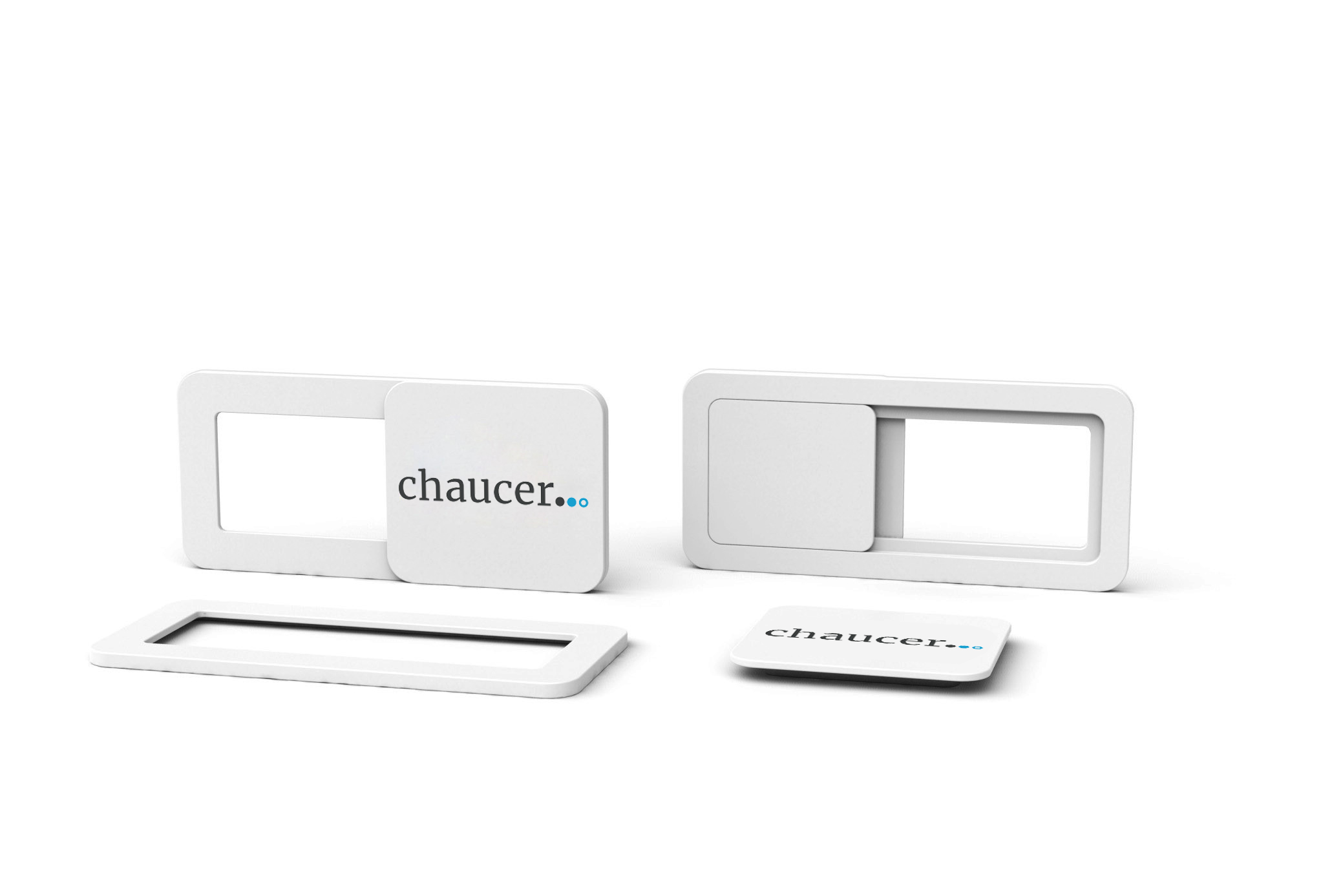 Webcam cover made from ABS plastic, available in black and white. Pantone match the product on 500 units or more.